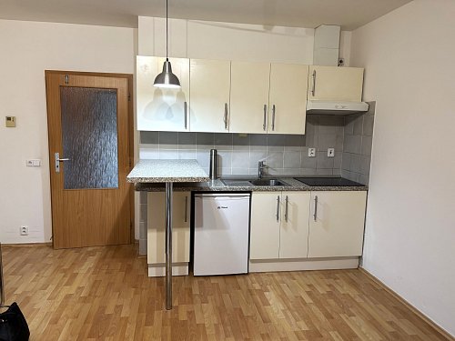 Samotný byt s užitnou plochou 34 m2 je prakticky řešený. Kuchyňský kout je vybaven kuchyňskou linkou s jídelním barem, novou sklokeramickou varnou deskou, digestoří, umyvadlem, dřezem a lednicí. Koupelna disponuje vanou, umyvadlem a WC, přičemž byly osazeny nové umyvadlové i sprchové baterie pro maximální komfort. Byt je částečně zařízený – v chodbě naleznete prostornou šatní skříň a v obývacím pokoji je k dispozici obývací stěna, kterou lze v případě nezájmu odstranit. K bytu dále náleží praktická sklepní kóje, poskytující další úložný prostor.